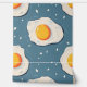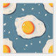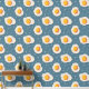 空の青い背景に生の揚げ卵のパターン。おはようございます朝の朝食: