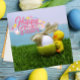 ハッピーイースター卵とゴルフボールカード。ゴルファーのためのイースターギフトアイディア