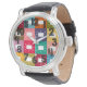 この男性用ウォッチは、100年モダン半の色のアンテナを持つ丸い長方形の正方形の半デザインを持ってモダンいる。同じデザインを違う使う?メッセージを表示