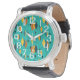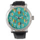この男時計は、ダイヤモンドの半モダン世紀の原子デザインとターコイズの分野のスターバストを持っている。