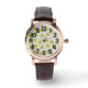 この女性の時計は、白を背景に暗色の緑の金ゴールドのスターバストを持つ緑の金ゴールドのサークルを繰り返し繰り返すタンのアーチのモダンデザイン100年の半ば頃を持っている。