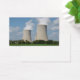 原子力発電所のツインクーリングタワーは、地方の青い空に蒸気の白い渦巻く雲を覆う。