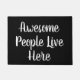 白い原稿の文字が付いている黒いドア・マット- "素晴らしい人々おもしろいな引用文の玄関マット"はここに住んでいます