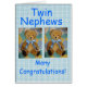 ギンガムの背景に青い弓を持つ可愛い小さなTEDが2つ、文字のツイン甥たちが多くおめでとう!