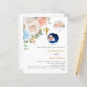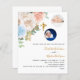2人の子供、男の子と女の子のバプテスマのために。ユーカリ飾の緑と金の葉金ゴールドと白、青とバラの花を持つ白い背景。子供の名前、写真、儀式の詳細をパーソナライズ。黒と金色の文字1枚= 1枚の招待状を印刷したエッジからエッジ