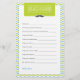 この願い事ベビーカードはおもしろい活動と任意のベビーシャワーの記念品である。緑と青の配色で、口ひげイラストレーション。「リトルマン」をテーマにしたベビーシャワーの完璧な追加!www.zazzle.com/mypartydesignで他のゲームと一致するアイテムを検索