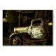 軽い絵画の夜のゴーストタウンの古い、破壊されたトラック。
