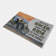 古いバイクもしくは自転車に乗る人と彼の人生の乗り物 ドアマット