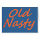 単語"古い扱いにくい"衣類の人気があるなブランドのからかい。 青い背景のオレンジ手紙で書かれる。