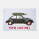ゴールデンレトリバー犬は屋根の上に緑のクリスマスパインの木と雪の結晶でレトロな黒い車を運転。