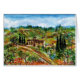 ブルガンルミによる油絵(c)トスカーナの風景鮮やか、カラフル、田舎の表現の美しいイタリアン、緑の丘、ポピー、花のフィールド、アンティークの素朴な村、明るい黄色でアクリル絵画の、オレンジ、赤、青の色、2008トスカーナ – イタリア