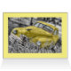 白黒分野が付いている古く黄色い車の写真。 ラベル: 黄色、車、自動車、自動車、"白黒"、色、写真、写真、アンティーク、ヴィンテージ、黒、白、"彼のためのギフト"、芸術的な分野、古い
