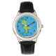 可愛いおもしろい緑tレックス恐竜の漫画 腕時計
