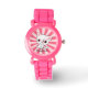 可愛らしい白い子猫オンカスタムピンクストリピースウォッチ