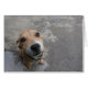 可愛すごいい犬が飼い主を見上げる。