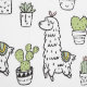 画像:Nadezda Barkova | ShutterstockイメージID: 1143288728 |このドードルパターンは、白い背景にアルパカとサボテンを特徴としている。