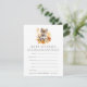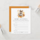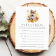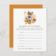 ベビーオオカミの水色のイラストレーションをカードの上部にオレンジ、赤、黄色の色合いの紅葉に囲まれた可愛い赤ちゃんシャワー推測ゲームカード。カードをカスタムカスタマイズする説明書、推測基準、および母親名と赤ちゃんシャワーの日付。このデザインは可愛いウッドランド動物の赤ちゃんシャワーのコレクションとコーディネート。