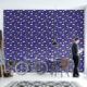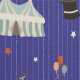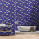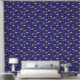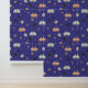 キュートなサーカス柄の壁紙サーカスのテント、一輪車、おもちゃやおもしろい帽子を青い背景に。子供部屋や他の子供用の部屋に最適な壁紙。