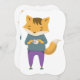ジーンズに入った可愛い漫画のキツネに茶を入れたカップ