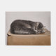 ダンボールのドアマットの上で寝ている灰色のタビー猫。猫好き。トレンディークール、シックモダン、、ユニーク、眠いペット子猫。Image copyright Marg Seregelyi Photography.