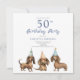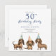 可愛いダシュンド犬50歳の誕生日パーティーの招待。簡単の変更文字。水かわいらし色デザイン。