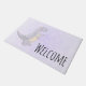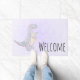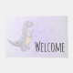 灰色がかった紫色の恐竜を特徴とする可愛いイラストレーションを持つウェルカムドアマット。