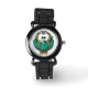可愛いティール(緑がかった色)孔雀パターンフクロウ 腕時計