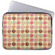 柔らかいパステル数々の水玉模様の背景に図解入りの、写真付きの可愛らしい色のドーナツパターン。