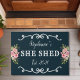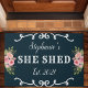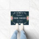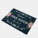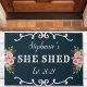 彼女はフローラ年を流して可愛いネイビーブルーのdoormatを確立。このカスタムデザインを自分の名前でカスタマイズする。