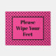 あなたの足かわいいピンクの水玉模様歓迎Doormat拭きなさい。ピンクまたはカスタム水玉模様の背景と黒い背景色。家、ショップ、オフィス、ビジネスなどのための上品な玄関ラグデザイン。
