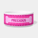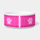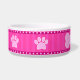 犬の足と骨©日当たりの良い火星デザイン。可愛いスタイリッシュ名前をカスタムするカスタマイズ可能な大きなペットドッグボウルにドッグポーとドッグボーンとドッグポーストライプドと豪華なピンクの水玉模様デザインを搭載した上に犬の名前を置く。男の友達に完璧な最高の贈り物。その他の色を使用できる