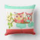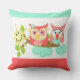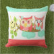 おもしろい、夏のデザインを備えた屋外の枕は、枝の上に2つの可愛いフクロウと笑顔の太陽を備えている。