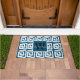 可愛い模様ネイビーブルーギリシャ鍵モノグラムモダン ドアマット