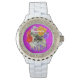 可愛い猫の花バラヘアドミューパーソナライズされた 腕時計