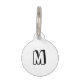 可愛モダンいモノグラム犬/猫連絡名情報ペット用名札。白カスタム色の背景の黒いカスタマイズ文字無地の。前面:イニシャルの文字と背面:名前、電話、住所、または重要な情報です。このidラベル素晴らしは犬と猫の両方のためだ。