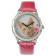 奇妙な赤い虎猫の子猫が、開花したブーゲンビラの後ろから覗いて、目を刺して、ポートレート。このダイヤルプレート付き女の子の腕時計は、猫とペット好きのギフトアイディアだ。Kato Mendenが撮影した可愛い生姜子猫ポートレート写真もしhttp://www.zazzle.com/kathom_photo希望の商品に載っていないデザインを見て、ぜひ私の店を通して遠慮なくお願いしま連絡す。私は早く商品を作ってあげたいと思います。