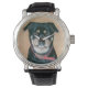 可愛い黒とタンのパグ犬のポートレートアートウォッチ 腕時計