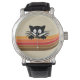 抽象芸術レトロなスタイルイラストレーションで黄色、オレンジ、赤ストライプ、茶色のとベージュ色の黒い可愛い猫のデコレーションを猫やレトロな恋人に提供。名前やモノグラカスタマイズムなどを加えて簡単になる。