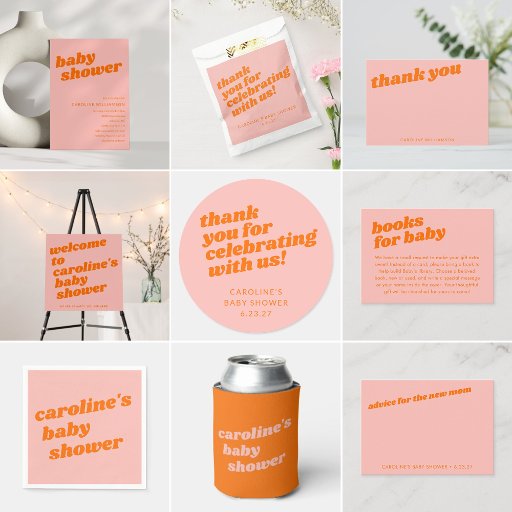 可愛モダンいパステルピンクオレンジレトロベビーシャワー 招待状