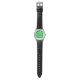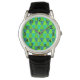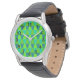 このメンズウォッチは、ブルーとグリーンの色合いで台形を繰り返すバウハウスデザインを持っている。