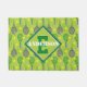 名前とイニシャル、緑と紫のテニスラケットで、背景はジューシーな緑に黄色のテニスボールがついています。テニスの選手やファンにとってかわいい柄です。テニスパターンのドアマット。テ素晴らしニス選手の贈り物として。モノグラムと名前をカスタムする(中央)