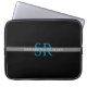 名前とモノグラムブルー/ホワイトグレーのパーソナライズストライプ ラップトップスリーブ