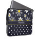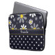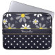 ラップトップスリーブ濃紺の背景に対する黄色い中心との白いデイジーの上のガーリーなレトロのモダンな花模様との13インチ、および底の粋で青および白い水玉模様パターン。 あなたの名前を加えることによって個人化して下さい。 スタイリッシュな女の子らしい女の子のための現在を完成して下さい。