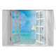 帆船とホワイトライトハウスを見下ろす切り立ったカーテンで窓を開け、Name Day