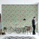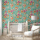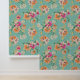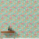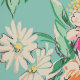 イメージbyサニーデザイン | ShutterstockイメージID: 656196433 |ティール(緑がかった色)の背景に明るい色の花が咲く模様。