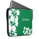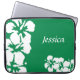 エメラルかわいらしドグリーンの背景にラップトップスリーブの白いハカスタムイビスカスフローラデザインを持つ。 名前は"カスタマイズ"オプションで変更できます!