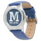 名前をカスタムするとモノグラムのタイポグラフィはっきりしたブルーウォッチ。