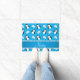 名前をカスタムするのスカイブルーのペンギンのイグルーの雪片 ドアマット