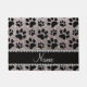 名前をカスタムするシルバーグリッター黒犬の足 ドアマット