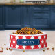 赤いギンガムの柄と青いラベルをスタイリッシュ特徴とする愛らしい名前をカスタムするペットフード丼。プレースホルダーの置き換えによってカスタマイズ文字。フォントの変更や「サイズ」ボタンのサイズの変更などクリックのその他のオカスタマイズプションには、*ズームプレビューに表示されるZazzle透かしは、最終印刷製品には表示されないことに注意。©ローズウッド、柑橘類